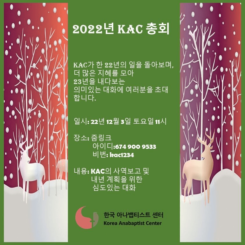 2022년도 한해동안 KAC가 한 일을 돌아보고, 2023년 내년을 위한 비전을 이야기는 총회에 여러분을 초대합니다.