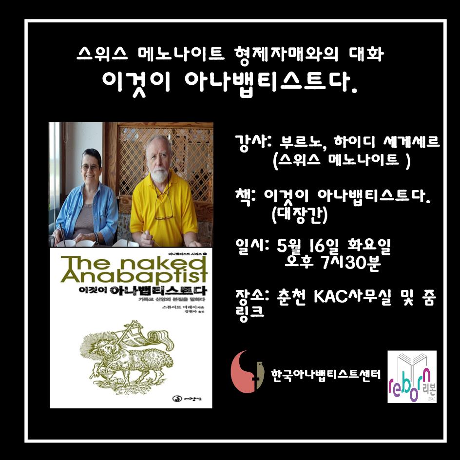책은 대장간에서 출간한 <이것이 아나뱁티스트다>를 가지고 진행될 예정입니다.